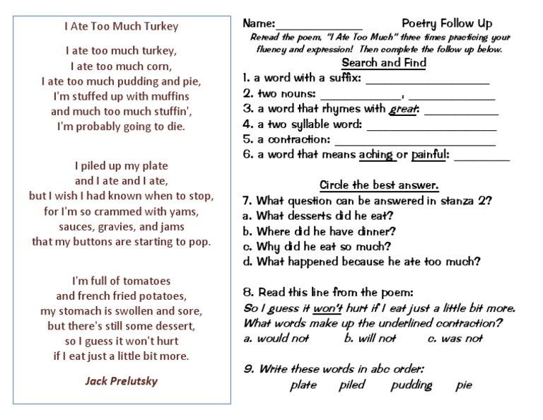 Humorous and funny poems to heal a hurting heart and bring a smile. It originally aired on the fox network in the united states on november 22, 1990. The poem is started for you. Hundreds of original christian poems and poetry inspired by the holy spirit, to brighten your day. President abraham lincon has designated the last thursday of every november to be thanksgiving day. R.'s awesomely fun math poems to help introduce and reinforce elementary level math topics! Thanksgiving is the seventh episode of the second season of the american animated television series the simpsons. A cute rhyming poem can bring a silly smile to your face and make you feel better. Collection of cute and fun rhyming poems for kids and adults to enjoy. Jul 23, 2021 · christian poems to feed the soul, religious godly poems to help you grow, and bible scripture poems to guide you. Christmas halloween thanksgiving worksheet 2: The next of the funny sonnet poems was inspired by my dog, harley, who gorged himself silly after tearing open two bags of trash on the friday morning after thanksgiving. Feb 03, 2020 · cute and funny poems.
